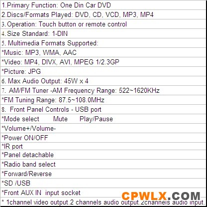 本公司产品畅销国内外。长期经销以下车载影音产品:专车专用DVD导航、通用型DVD、吸顶DVD显示器、头枕DVD显示器、挡阳板显示器、后视镜、伸缩DVD、单碟DVD、CD、便携式导航、台式显示器、摄像头(专用和通用)、汽车音响、喇叭、低音炮、线材等系列车载电子产品,品种齐全、质量保证。公司秉承"顾客至上,锐意进取"的经营理念, 坚持"客户第一"的原则为广大客户提供优质的服务